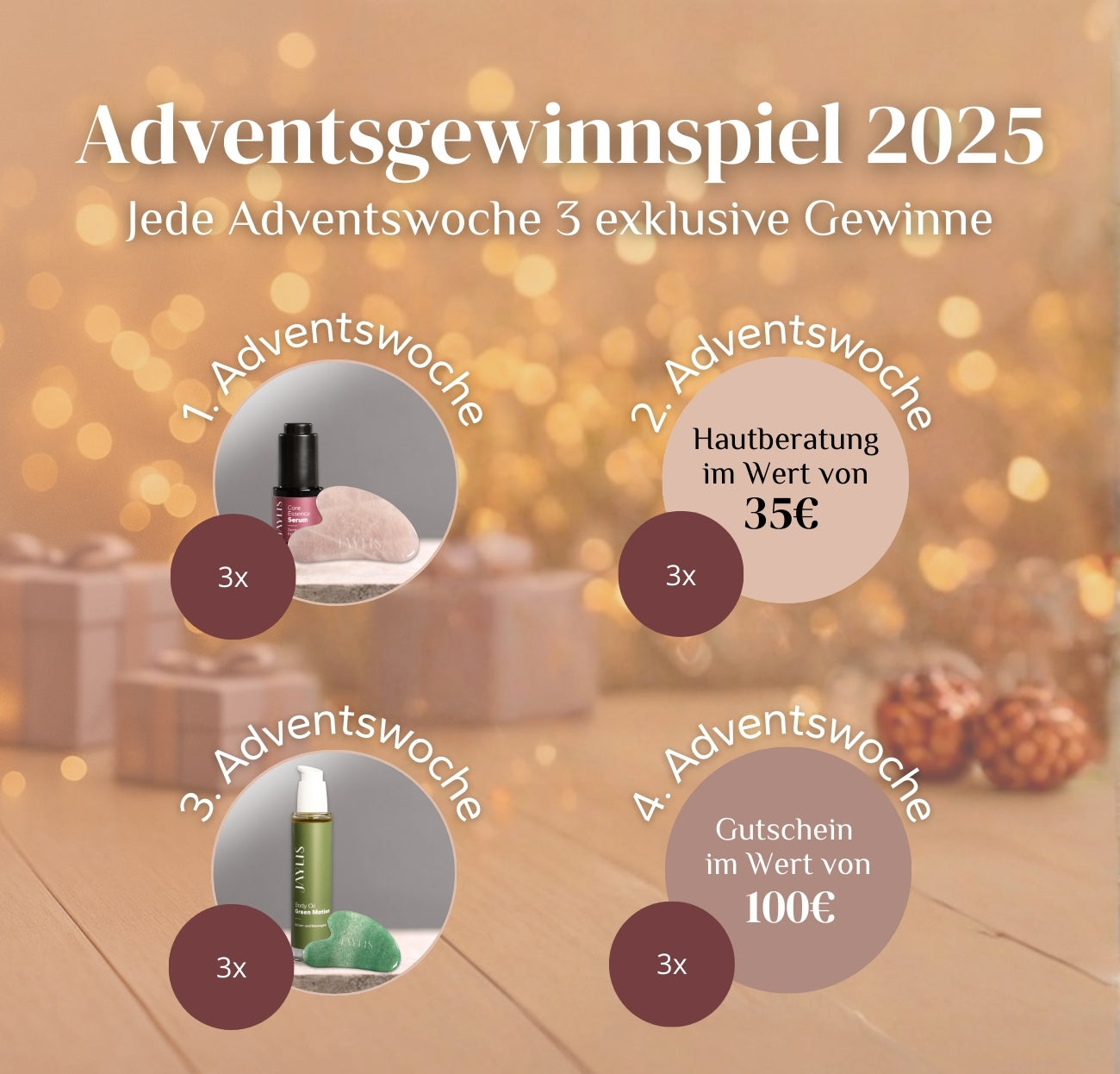 Während der Adventszeit - vom 30. November bis 24. Dezember - bekommst du zu deiner Bestellung automatisch ein Los für unser Advents-Gewinnspiel!