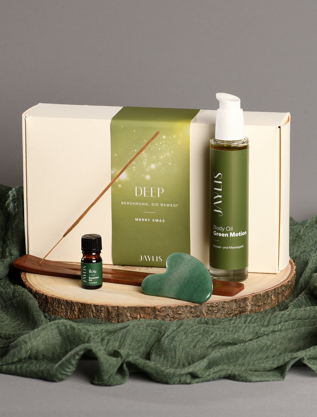 Deep ist kein gewöhnliches Pflegeprodukt – es ist ein bewusstes Ritual, das dich einlädt, langsamer zu werden, dich zu spüren und loszulassen. Mit jedem Atemzug, jeder Bewegung, jeder Berührung öffnet sich Raum für Tiefe – körperlich und emotional. Es vereint Pflege, Berührung und Achtsamkeit zu einem Moment echter Präsenz – allein oder zu zweit.